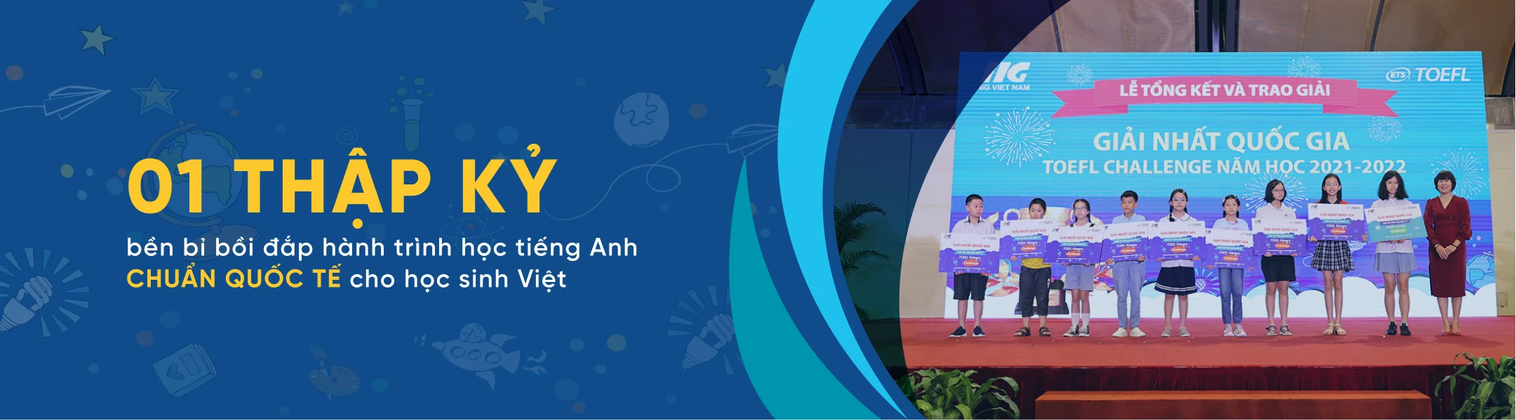 - •VÒNG 2: VÒNG THI CẤP TỈNH/THÀNH PHỐ/KHU VỰC: Vòng thi rất quan trọng giúp học sinh sở hữu phiếu điểm TOEFL Primary, TOEFL Junior do Viện Khảo thí Giáo dục Hoa Kỳ (ETS) cấp; Thí sinh có kết quả xuất sắc tại các tỉnh/thành phố/khu vực sẽ giành quyền tham dự Vòng Chung kết Quốc gia.